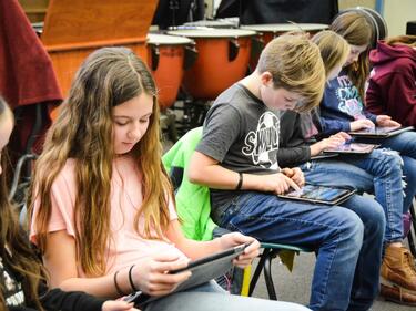 During music explorations, students will learn how to appreciate music through various learning experiences and opportunities, such as playing the ukulele and guitar, drumming with buckets, and piano using instruments and technology, leading to composing their own musical scores.